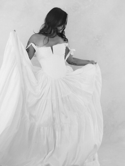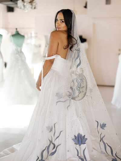 Our collection is size-inclusive and our gowns start at around $2000. The majority of the collection falls between $2000 and $4000.